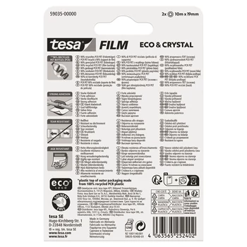 Ragasztószalag 19mmx10m irodai átlátszó újrahasznosított Tesa Eco & Crystal 2 db/bliszter | |